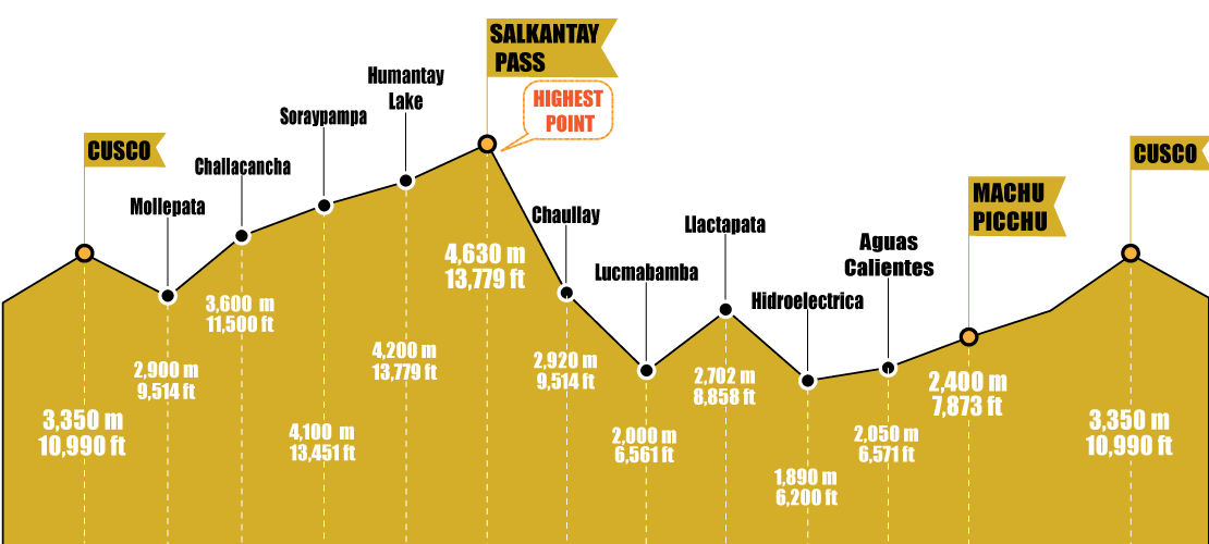 Altitud de la caminata 04 días Salkantay a Machupicchu: