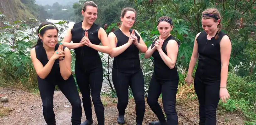 Pasajeros Inkayni listo para realizar Canotaje¡Disfruta del rafting en Inca Jungle!